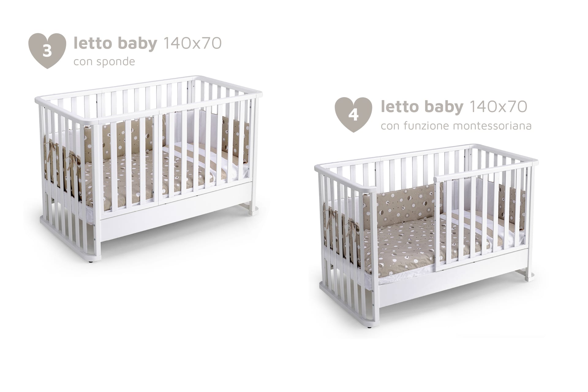 Il lettino cresce con il bambino e diventa cm. 140