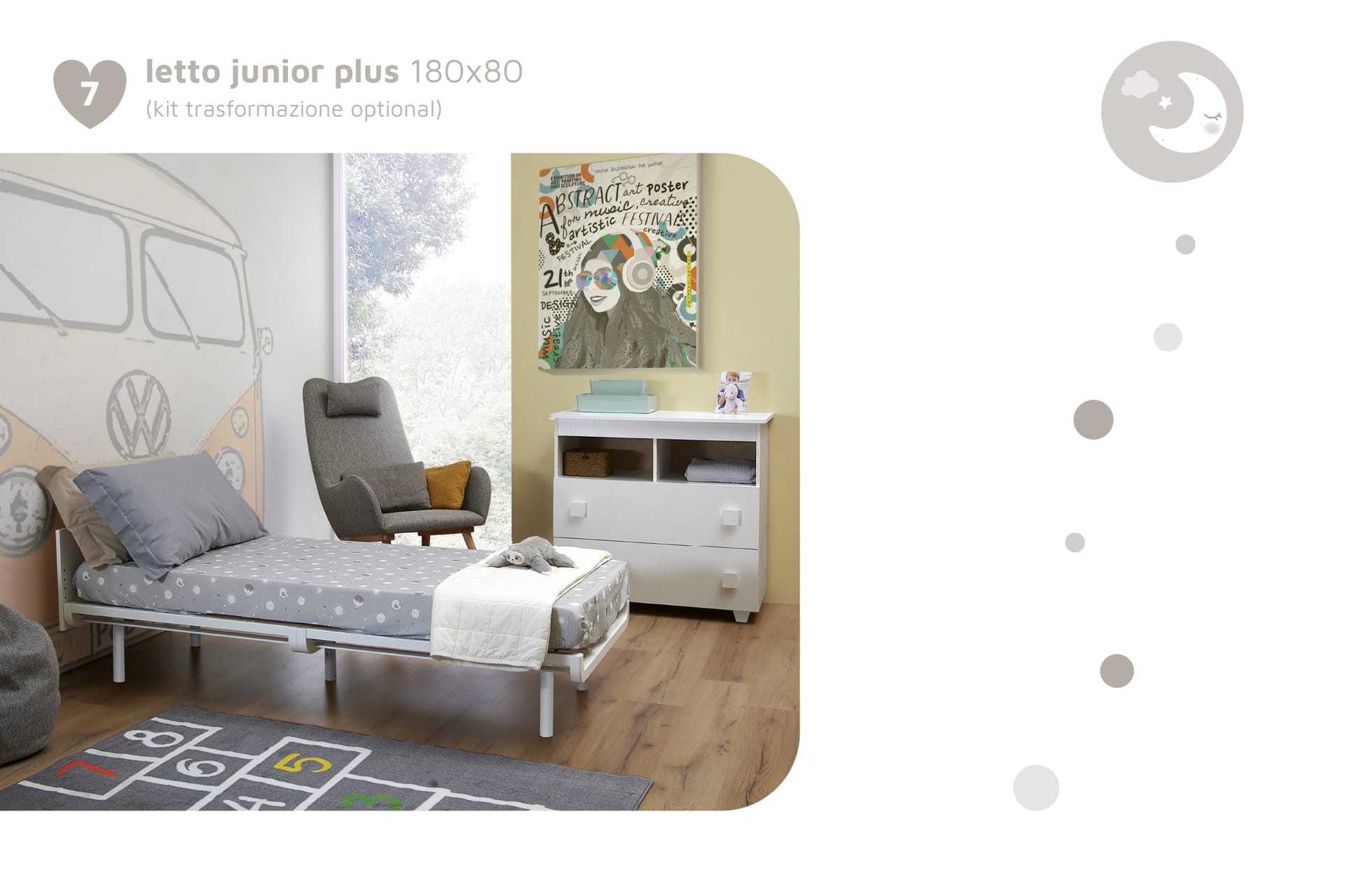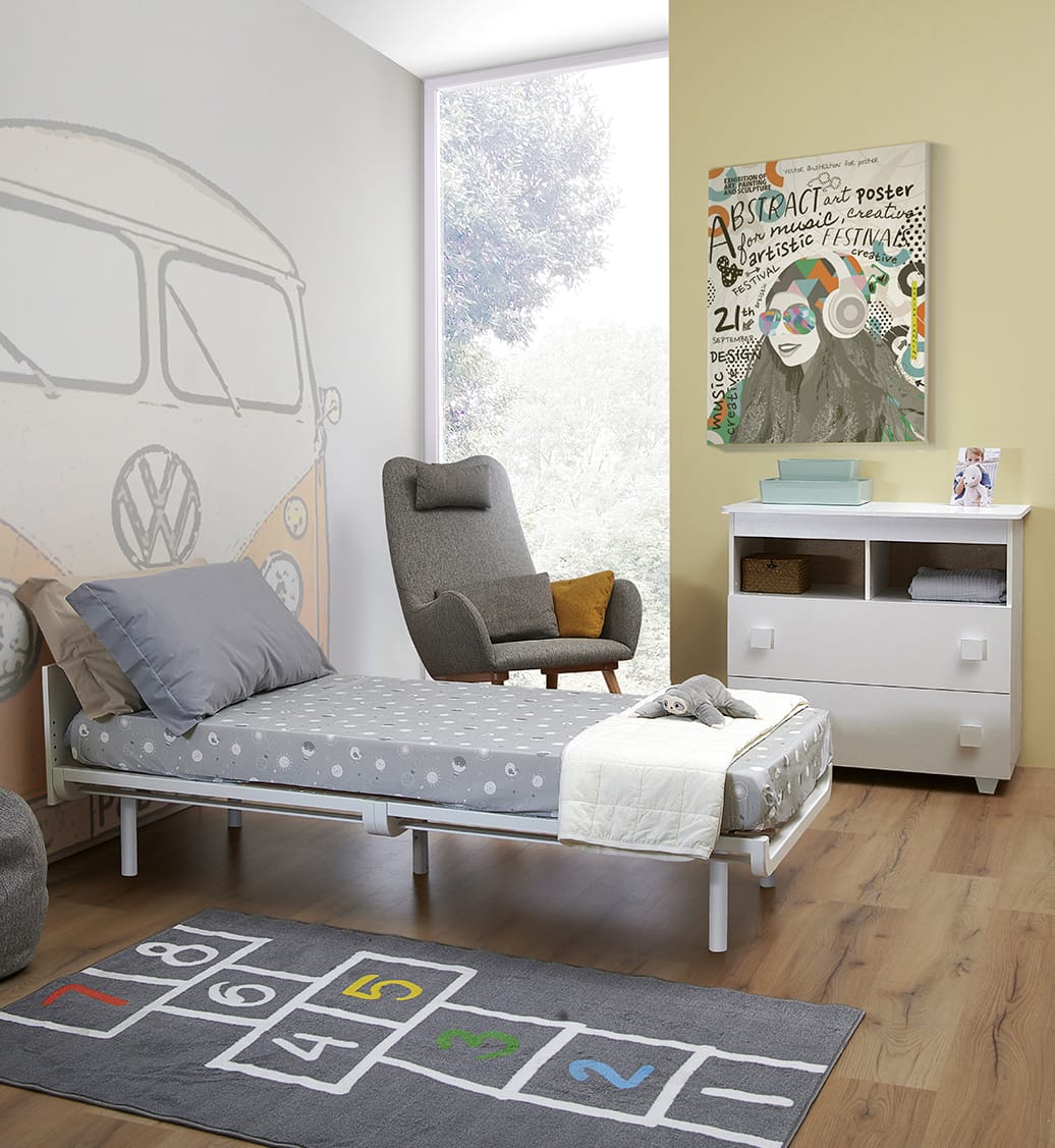 Lettino da cm. 75 a 140 ( con Optionals fino a cm. 180 ) incluso di materasso, tessile.